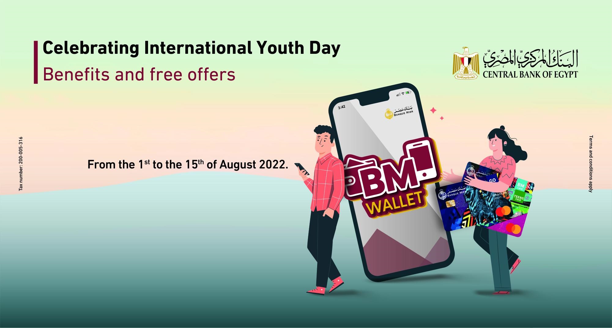 On the occasion of the "International Youth Day", which will continue during the period from 1 to 15 August 2022, the Bank has been keen to provide many benefits and free offers that serve all customers, especially the youth, as they are the largest group in society. These benefits include, opening accounts for new customers without fees and without a minimum for opening accounts, The bank bears the stamp fees necessary to open accounts, with the issuance of the Meeza card for immediate debit or the classic card for immediate debit for free. For customers under 16 years of age, the fees for issuing the prepaid card (TEENS) are exempted within Youth program with the possibility of using it in purchases through commercial outlets or online through the Internet without the need to open accounts. For customers from 16 to 21 years old, accounts are opened for free with the issuance of a free (BM) card, for customers from 21 to 35 years old, accounts are opened for free with the issuance of a (GO) card. As for customers using the BM Wallet application, 20% of the first financial movement is recovered with the application of the regulating conditions.