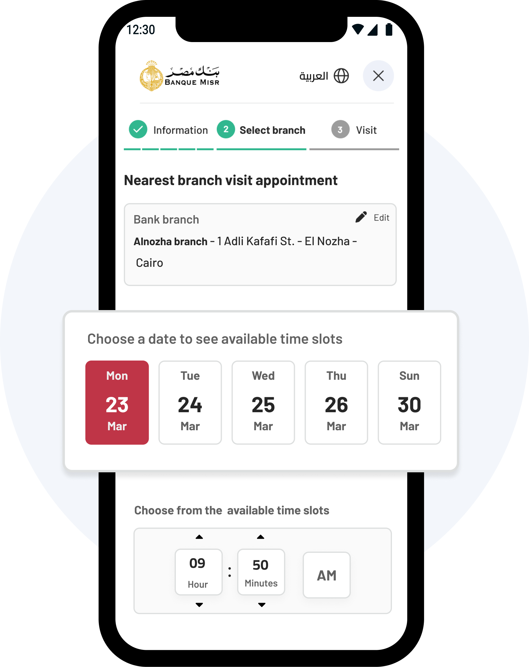 • Register for Banque Misr's additional services free of charge, including the BM Wallet e-wallet and IVR service