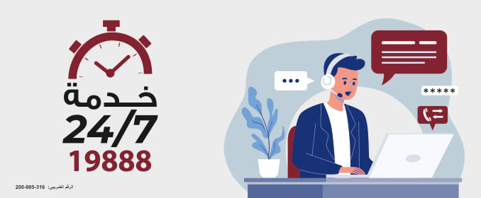 من أهم منافذ البنك لخدمتكم من خلال تلقي مكالماتكم الهاتفية على الرقم الموحد المختصر (19888)، وبسعر المكالمة العادية طوال أيام الأسبوع (7×24).