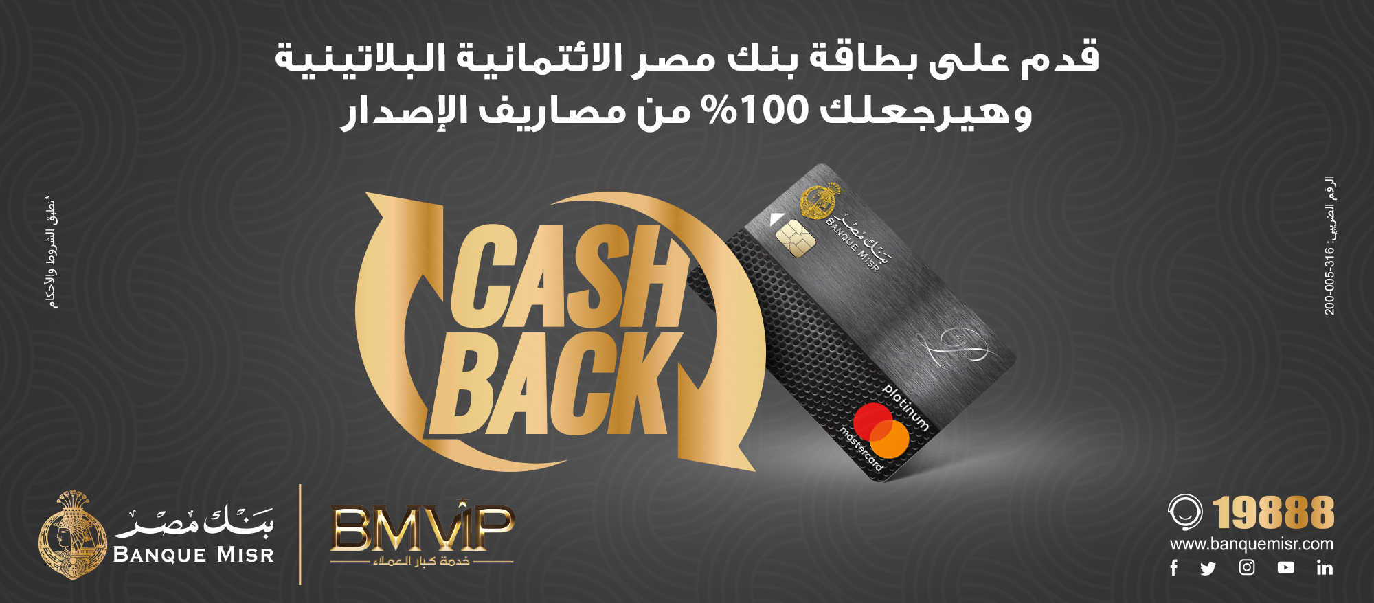 • كاش باك لمصاريف الاصدار في حالة استخدام البطاقة بأكثر من 10 الاف جنية خلال اول 3 شهور