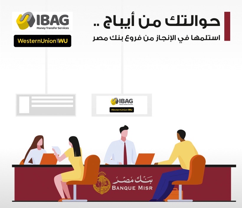 دلوقتي أيباج ويسترن يونيون في فروع بنك مصر، وتقدر تستلم حوالتك في الإنجاز بالجنيه المصري أو بالدولار