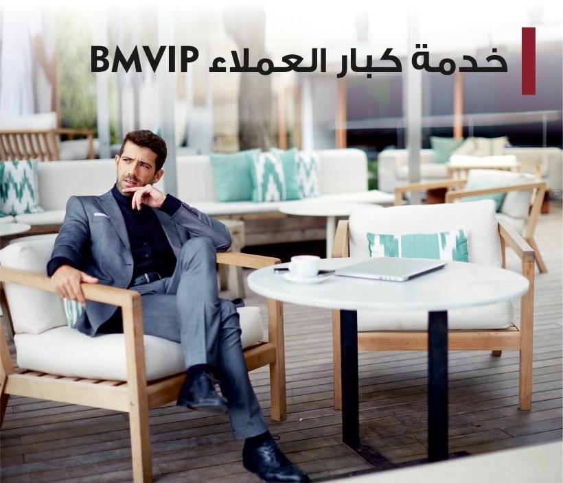 خدمة BM VIP تخدم كبار عملاء البنك اصحاب الاوعية الادخارية والحسابات وتستهدف تقديم خدمات مميزة تقلل من الوقت والجهد لعملائنا وتهدف الي تنمية العلاقة بين البنك وعملائه،